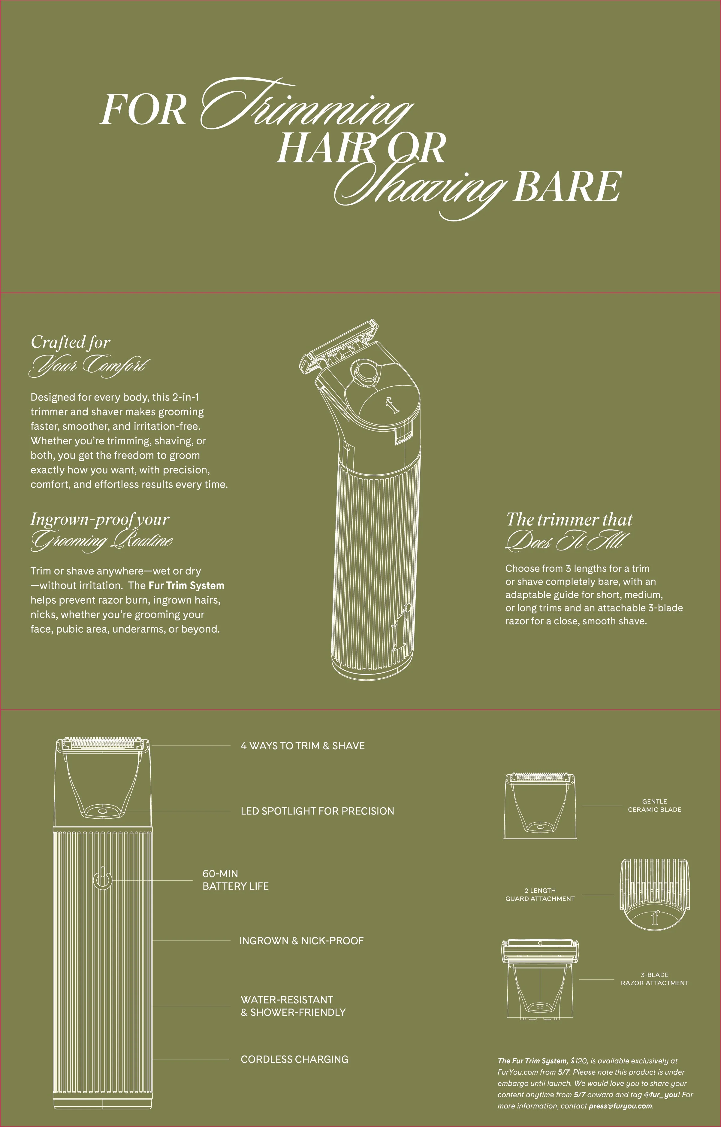Designed an PR Influencer invite for the launch of the Fur Trim System, a 2-in-1 trimmer and razor. The concept of this event invite was a trifold that reflected the elevated look and feel of the product while going in depth on the device.