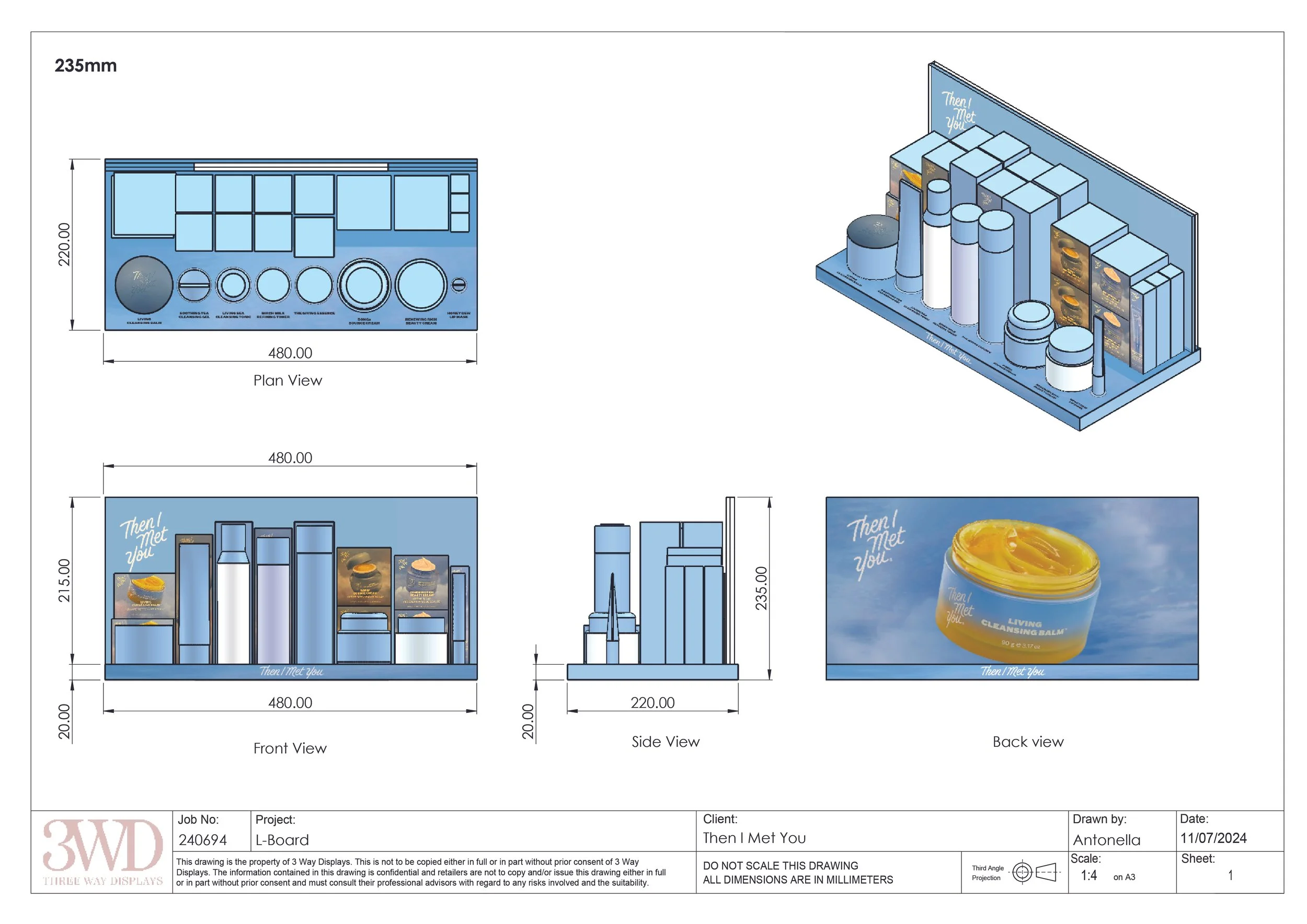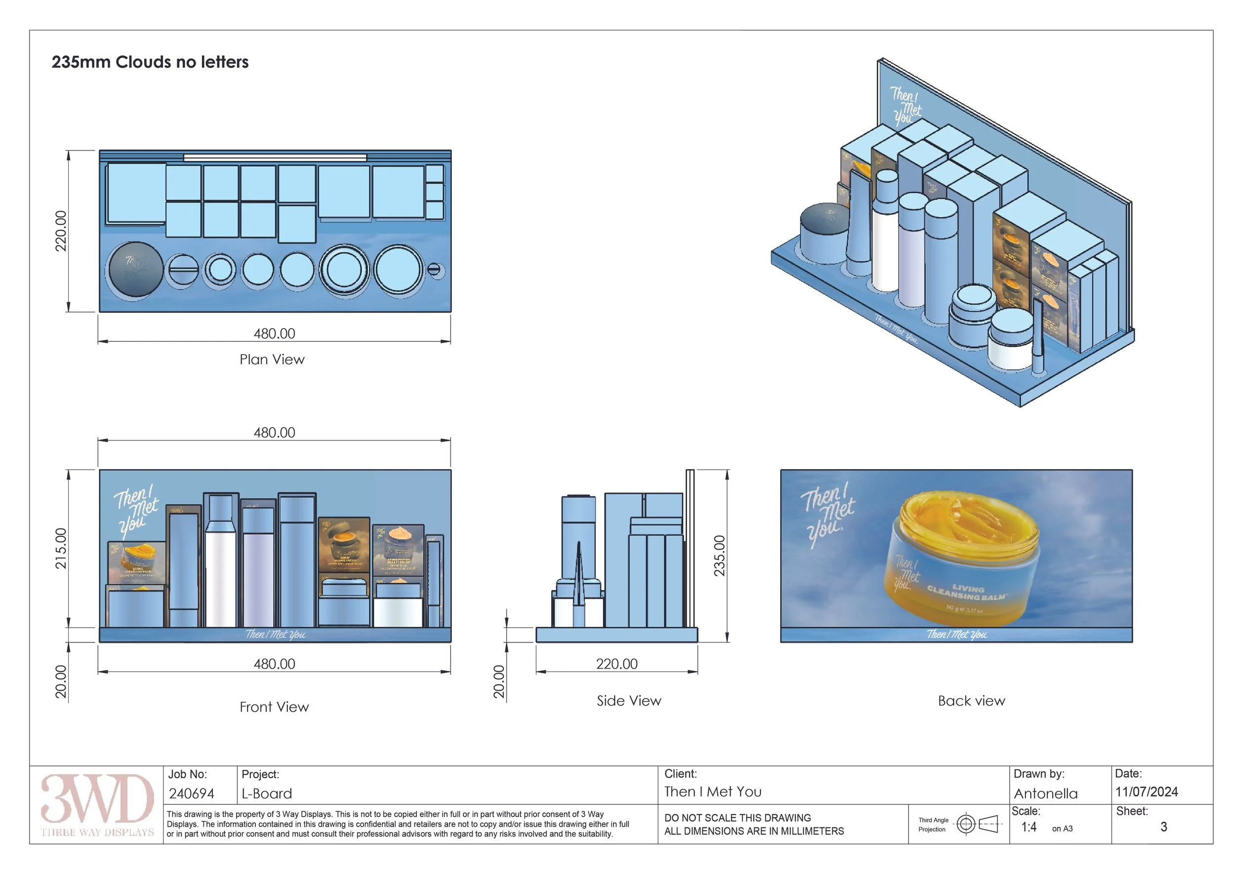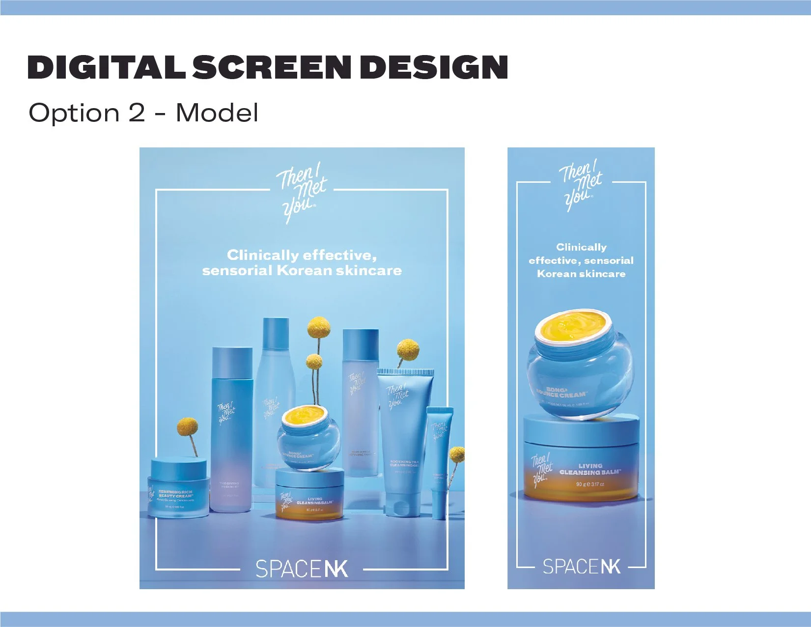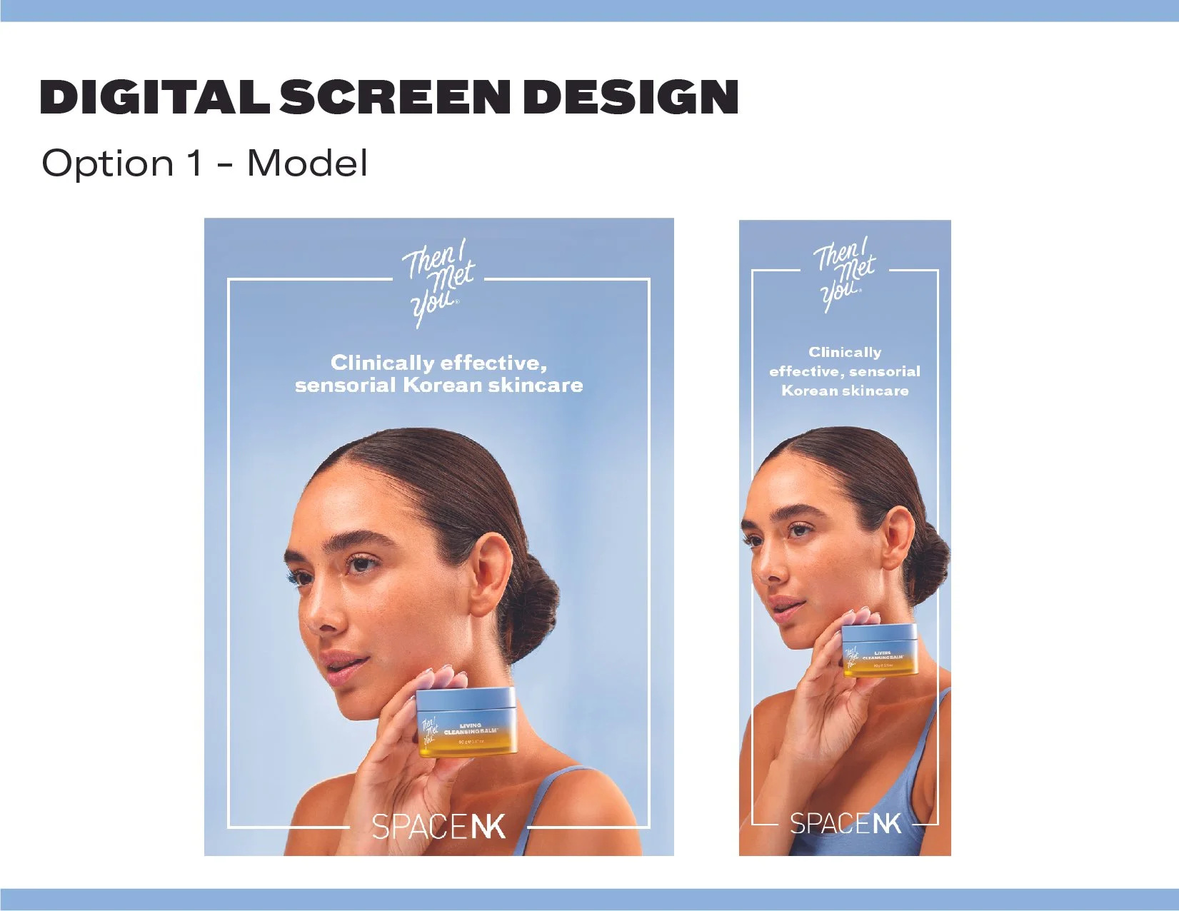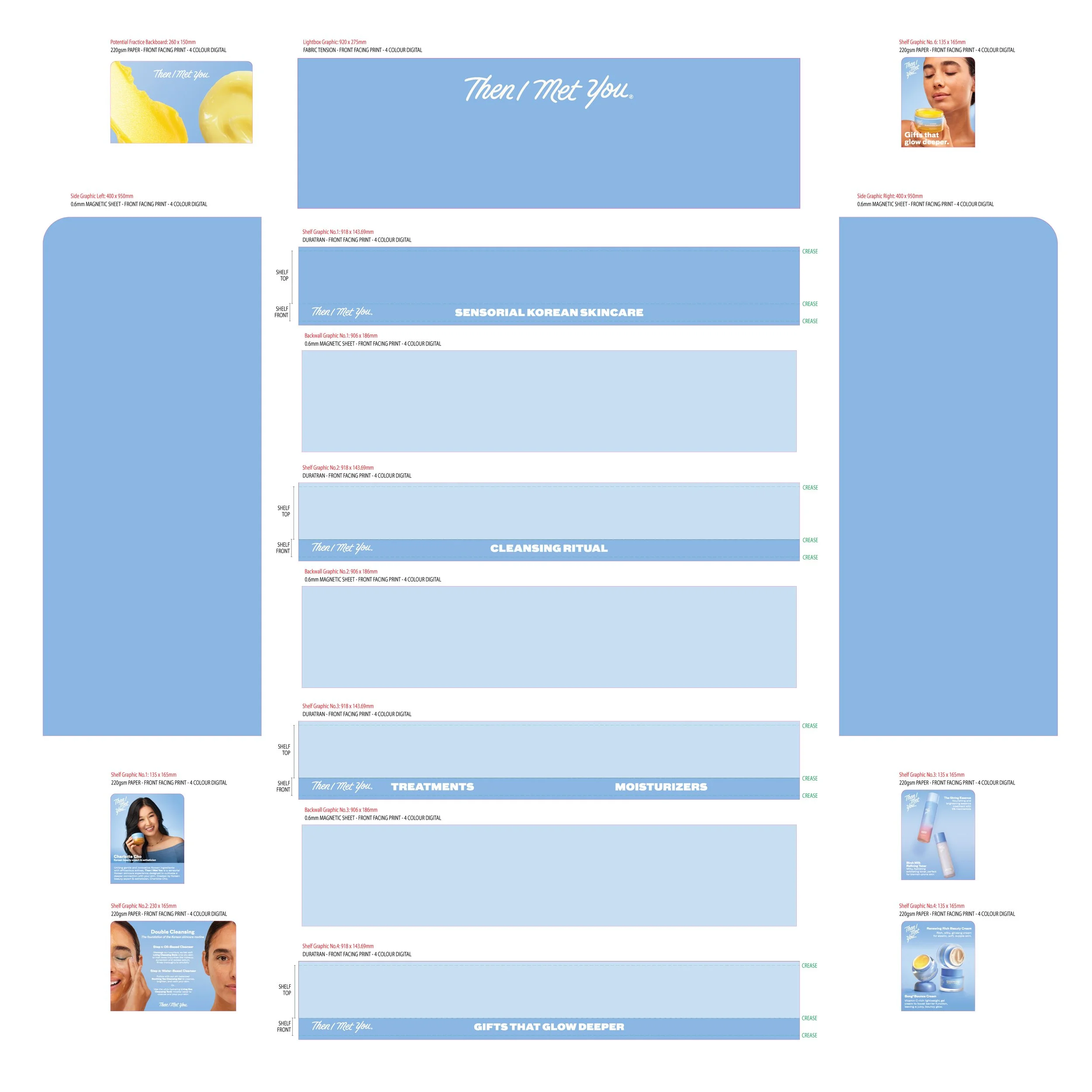 In 2024, I partnered with the SpaceNK creative team to support the launch of Korean-American skincare brand Then I Met You across retail locations. My role encompassed the design and development of premium in-store collateral—including a custom gondola shelf, branded L-board shelving, immersive floor display activations, and dynamic video assets for window installations—crafted to elevate brand presence and engage customers at every touchpoint.